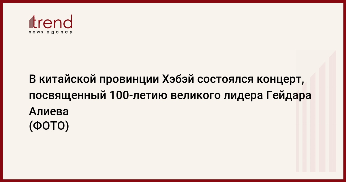 БАКУ /Trend/ - В городе Ланфан китайской провинции Хэбэй состоялся концерт азербайджано-китайской дружбы, посвященный 100-летию общенационального лидера азербайджанского народа Гейдара Алиева.