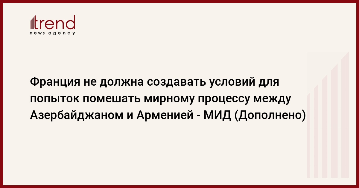 БАКУ /Trend/ - На фоне усилий Азербайджана по обеспечению мира, стабильности и развития в регионе, нормализации отношений с Арменией на основе уважения принципов международного права, таких как территориальная целостность и суверенитет, французская сторона, демонстрируя одностороннюю позицию, не должна создавать условий для попыток препятствовать процессу.