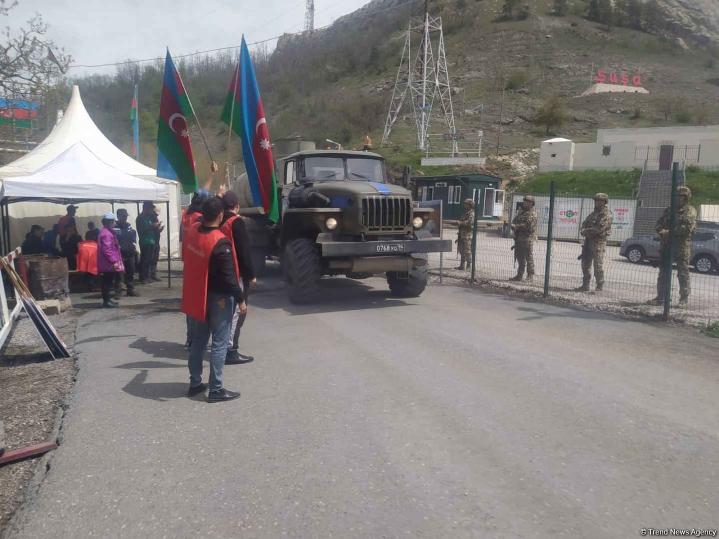 Как сообщает во вторник из города Шуша сотрудник Trend, были созданы условия для проезда колонны из трех легковых и 42 грузовых автомобилей миротворцев из Ханкенди в направлении Лачина.