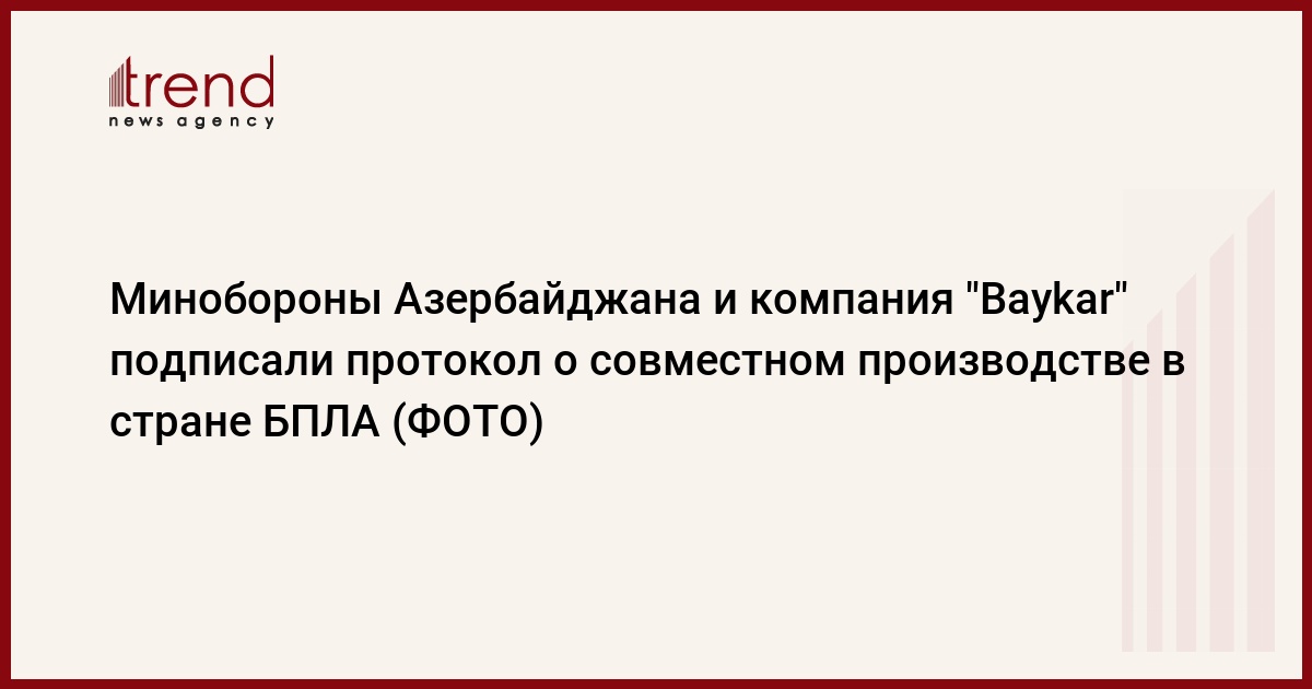 БАКУ /Trend/ - Между министерством обороны Азербайджана и турецкой компанией "Baykar" подписан протокол о намерениях по совместному производству беспилотных летательных аппаратов (БПЛА) в Азербайджане.