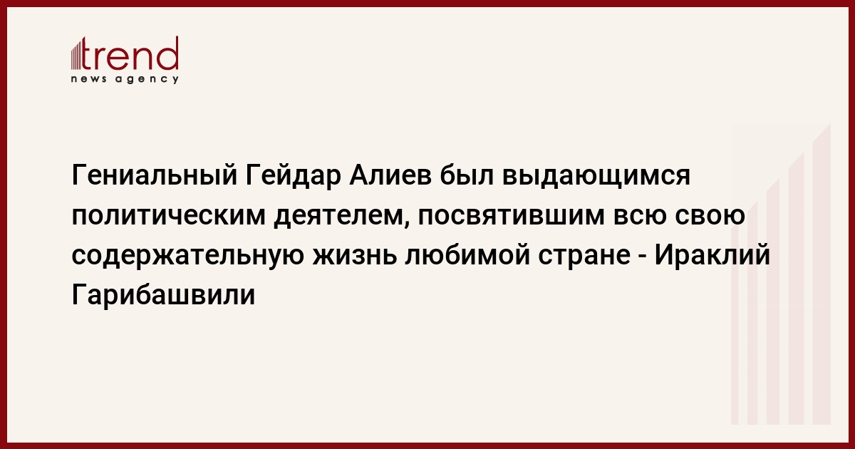 Гениальный Гейдар Алиев был выдающимся политическим деятелем, посвятившим всю свою содержательную жизнь любимой стране и заложившим основу национальной государственности. Сегодня Азербайджан играет важную роль на международной арене и чтит память своего общенационального лидера.