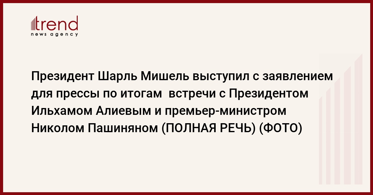 "Было приятно принять сегодня Президента Ильхама Алиева и премьер-министра Пашиняна на пятой встрече в Брюсселе. Наши обмены мнениями были откровенными, открытыми и ориентированными на результат. Они сосредоточились на прогрессе на пути к нормализации армяно-азербайджанских отношений. Лидеры разделили общее стремление к установлению мира на Южном Кавказе. Я высоко оцениваю их соответствующие усилия. Вместе мы рассмотрели все вопросы, стоящие на нашей повестке дня.