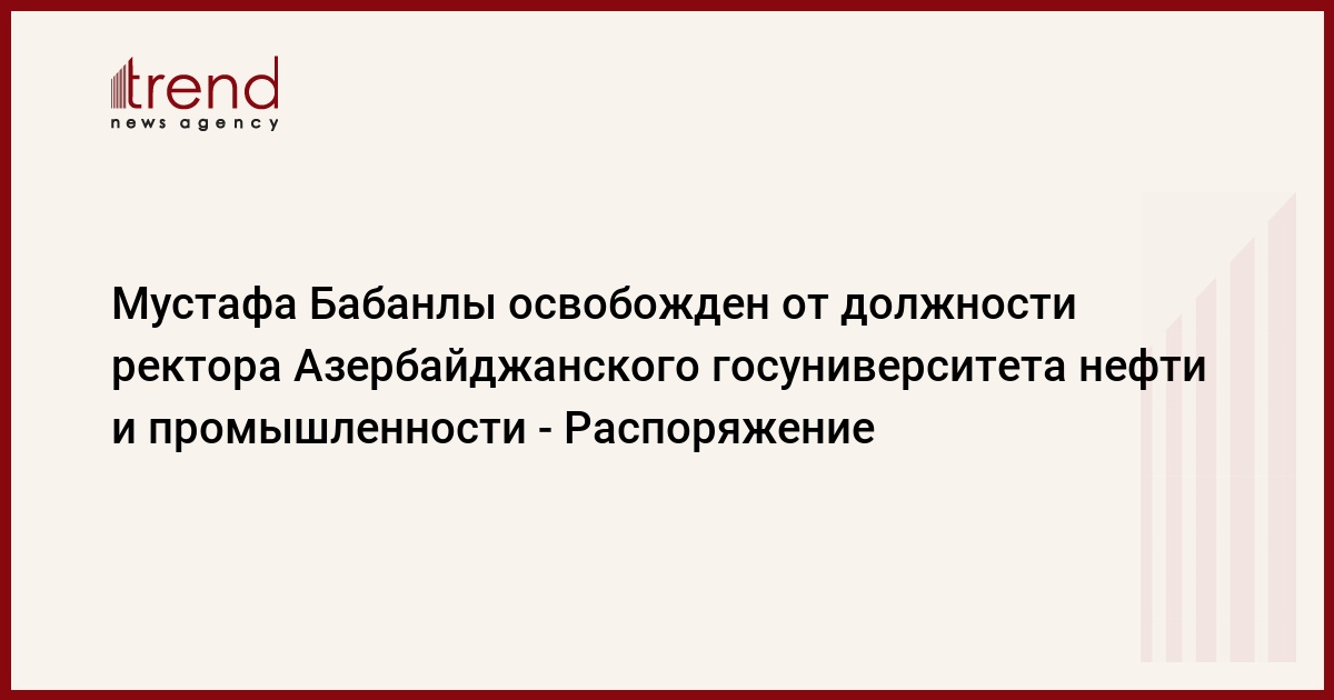 Как сообщает в понедельник Trend согласно распоряжению, Мустафа Баба оглы Бабанлы освобожден от должности ректора Азербайджанского государственного университета нефти и промышленности.