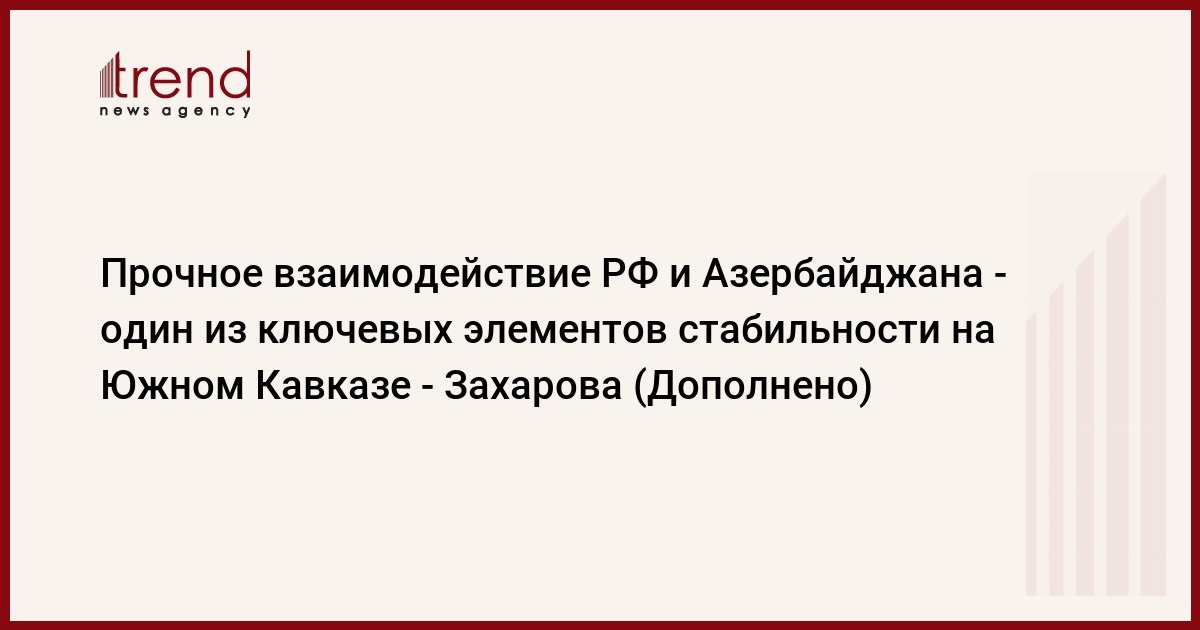 БАКУ/Trend/ -Прочное и тесное взаимодействие РФ и Азербайджана является одним из ключевых элементов стабильности на Южном Кавказе.