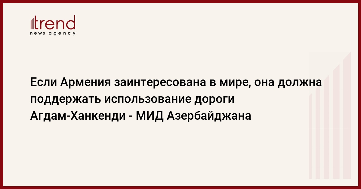 БАКУ /Trend/ - Если Армения заинтересована в мире и стабильности, она должна поддержать использование дороги Агдам-Ханкенди.