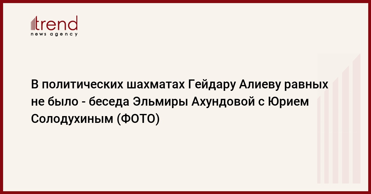 Эльмира Ахундова. – Юрий Николаевич, в каком качестве и когда вы стали сотрудничать с Гейдаром Алиевичем Алиевым? Когда состоялось ваше личное знакомство?