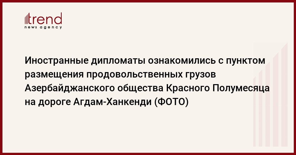 АГДАМ /Trend/ - Иностранные дипломаты ознакомились с пунктом размещения продовольственных грузов Азербайджанского общества Красного Полумесяца на дороге Агдам-Ханкенди.