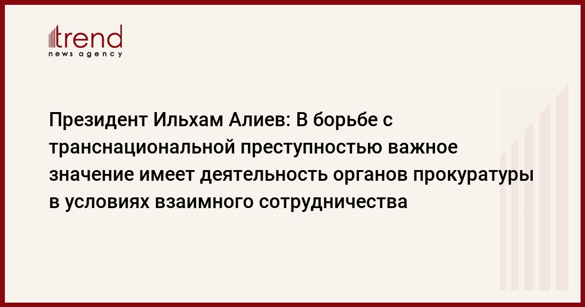 БАКУ/Trend/ - Именно экономическое развитие и правопорядок в каждом государстве обусловливают обеспечение благосостояния народа. Преступность – это явление, которое, представляя серьезную угрозу упомянутым факторам, требует ведения борьбы на международном уровне. Важное значение в этой сфере, особенно в борьбе с транснациональной преступностью, имеет деятельность органов прокуратуры в условиях взаимного сотрудничества.