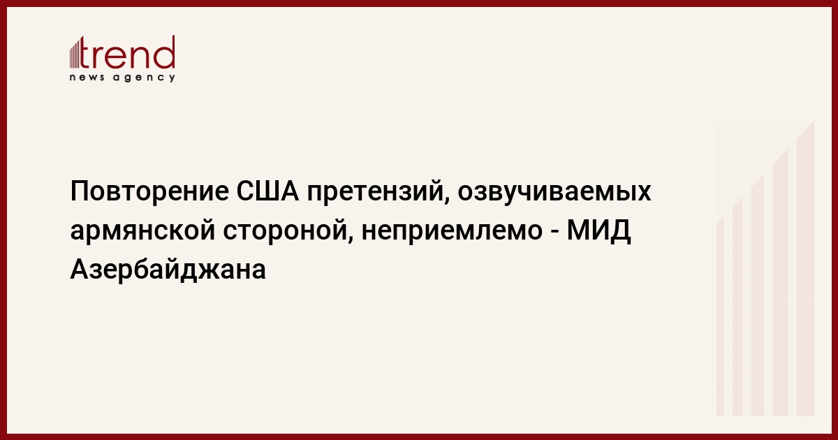 БАКУ /Trend/ - Повторение США претензий, озвучиваемых армянской стороной, неприемлемо.