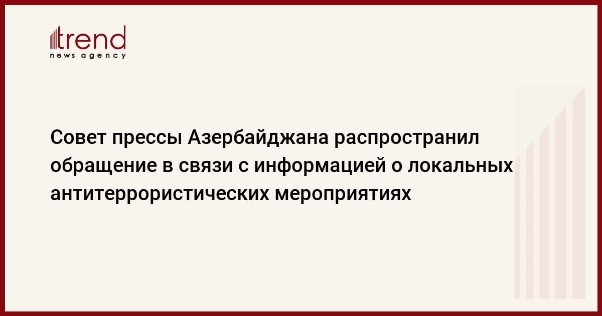 БАКУ /Trend/ - Совет прессы Азербайджана распространил обращение в связи с информацией о локальных антитеррористических мероприятиях, передает во вторник Trend.
