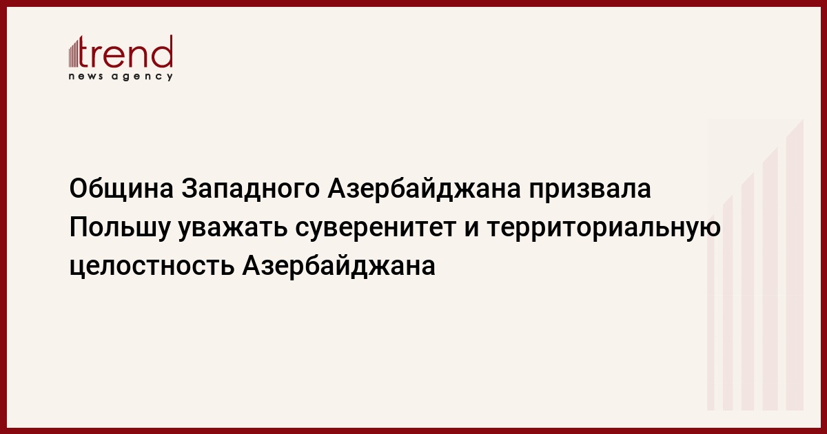 БАКУ/Trend/ - Община Западного Азербайджана призвала Польшу уважать суверенитет и территориальную целостность Азербайджана.