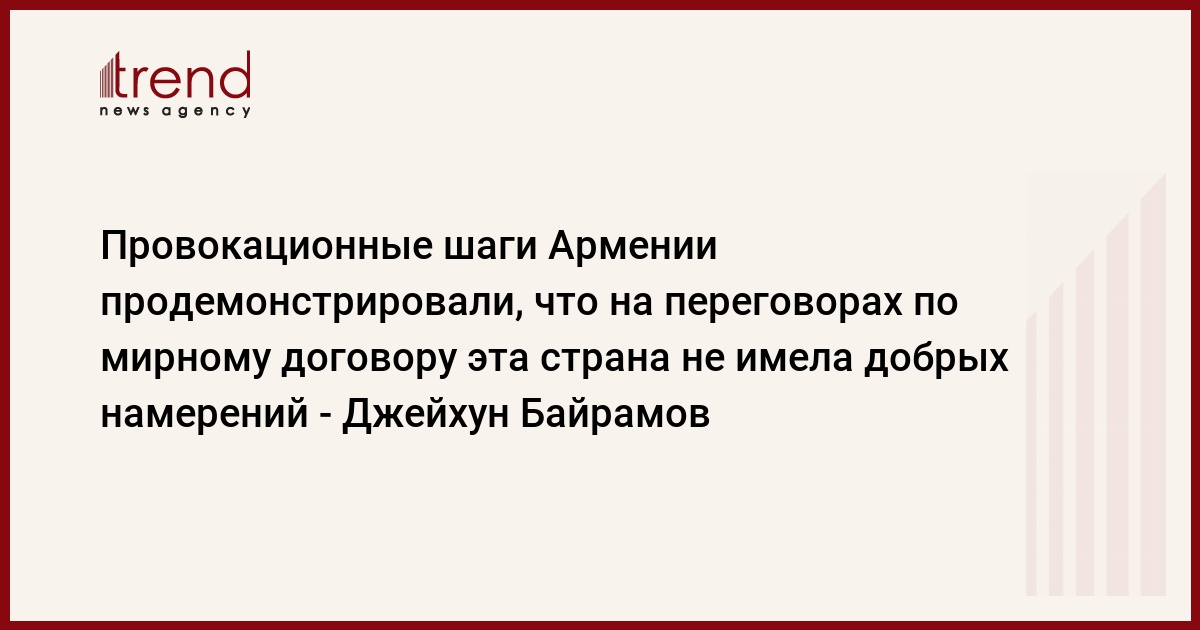 БАКУ /Trend/ - Незаконная деятельность надуманного режима, созданного в результате оккупации Арменией территорий Азербайджана, под видом так называемых «президентских выборов» стала очередным крайне провокационным шагом. Этими шагами Армения ясно дала понять, что она намерена обесценить суть своих предыдущих заявлений о признании суверенитета и территориальной целостности Азербайджана. Это продемонстрировало, что Армения на переговорах по мирному договору не имела добрых намерений.
