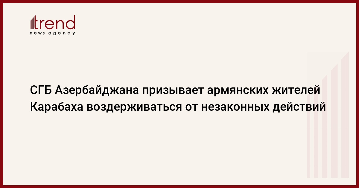 БАКУ/Trend/ - Служба государственной безопасности (СГБ) Азербайджана призывает армянских жителей Карабаха воздерживаться от незаконных действий.