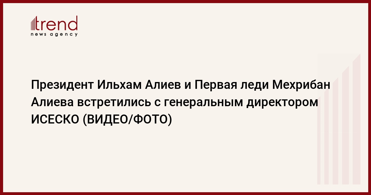 БАКУ /Trend/ - 2 октября Президент Азербайджанской Республики Ильхам Алиев и первая леди Мехрибан Алиева встретились с генеральным директором ИСЕСКО Салимом бин Мухаммадом аль-Маликом.
