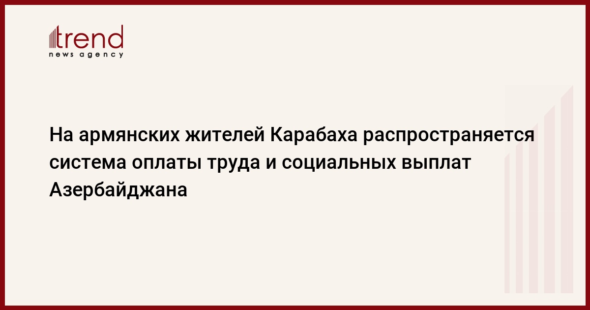 БАКУ /Trend/ - На армянских жителей Карабаха распространяется система оплаты труда и социальных выплат, применяемая по всей стране.