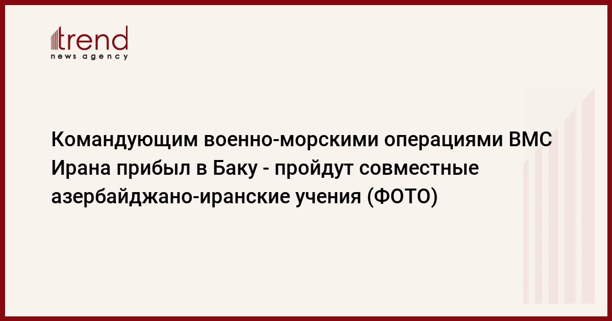БАКУ /Trend/ - Для участия в качестве наблюдателя в совместных тактических учениях «Хазри-2023», проводимых в Азербайджане с участием кораблей и военнослужащих ВМС Азербайджана и Казахстана, в Баку прибыла делегация ВМС Исламской Республики Иран, передает в среду Trend со ссылкой на минобороны Азербайджана.