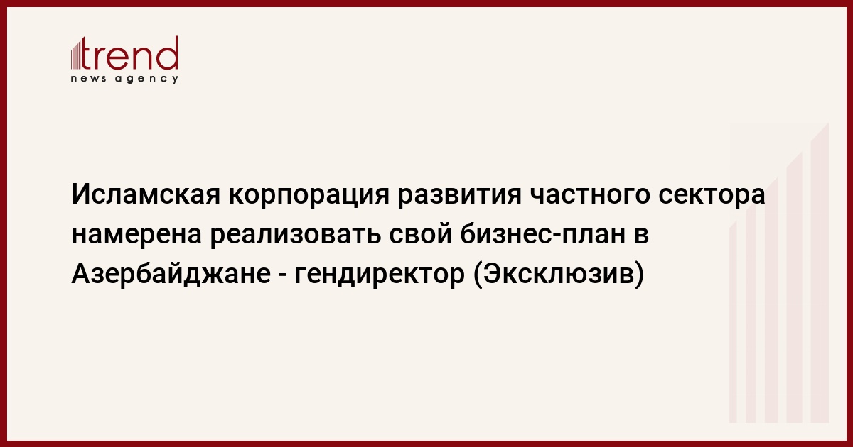 БАКУ/Trend/ - Исламская корпорация развития частного сектора (ICD) намерена реализовать свой бизнес-план по развитию частного сектора в Азербайджане.
