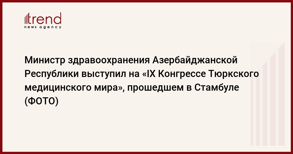Выступающий на мероприятии министр здравоохранения Турции Фахреттин Коджа поприветствовал азербайджанскую делегацию и других участников конгресса. Он в своём выступлении подчеркнул, что «IX Конгресс Тюркского медицинского мира» проходит при попечительстве Президента страны в рамках 100-летия Турецкой Республики. Министр отметил, что тема конгресса в этом году — «Искусственный интеллект в медицине». Обсуждение и обмен опытом в сфере современной медицины, новых технологических решений, цифровизации и инноваций внесут важный вклад в дальнейшее развития отношений в сфере здравоохранения.