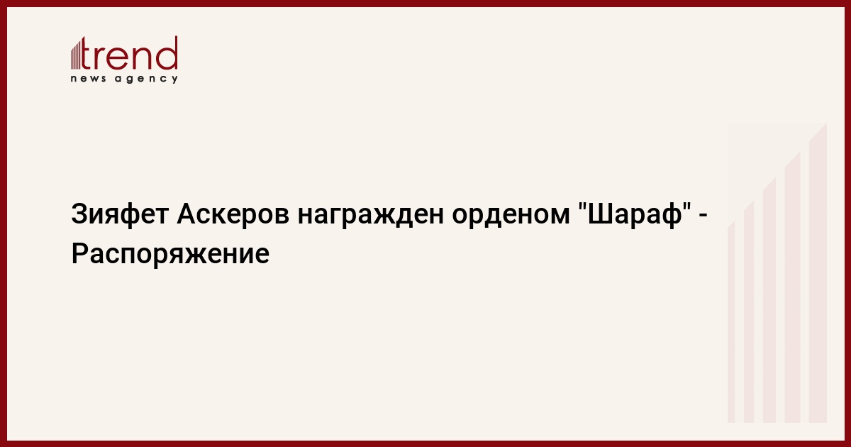 БАКУ /Trend/ – За многолетнюю плодотворную деятельность в общественно-политической жизни Азербайджанской Республики Зияфет Аббас оглу Аскеров награжден орденом "Шараф".