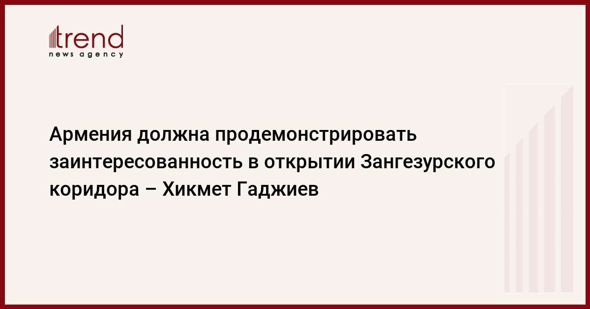 БАКУ /Trend/ - Армения должна продемонстрировать свою заинтересованность в открытии Зангезурского коридора.