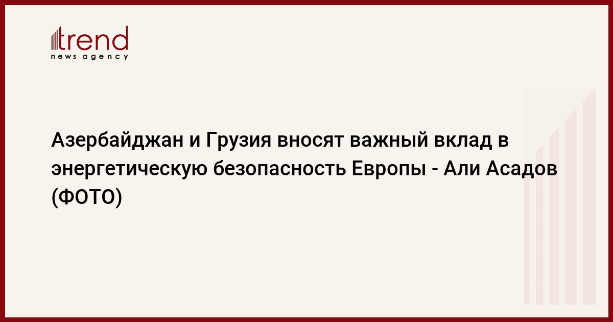 БАКУ/Trend/ – Азербайджан и Грузия вносят важный вклад в энергетическую безопасность Европы. Стратегическими проектами в этом плане считаются Баку-Тбилиси-Джейхан (нефть), Баку-Тбилиси-Эрзурум (газ), а также Южный газовый коридор, реализуемый при совместном участии двух стран.