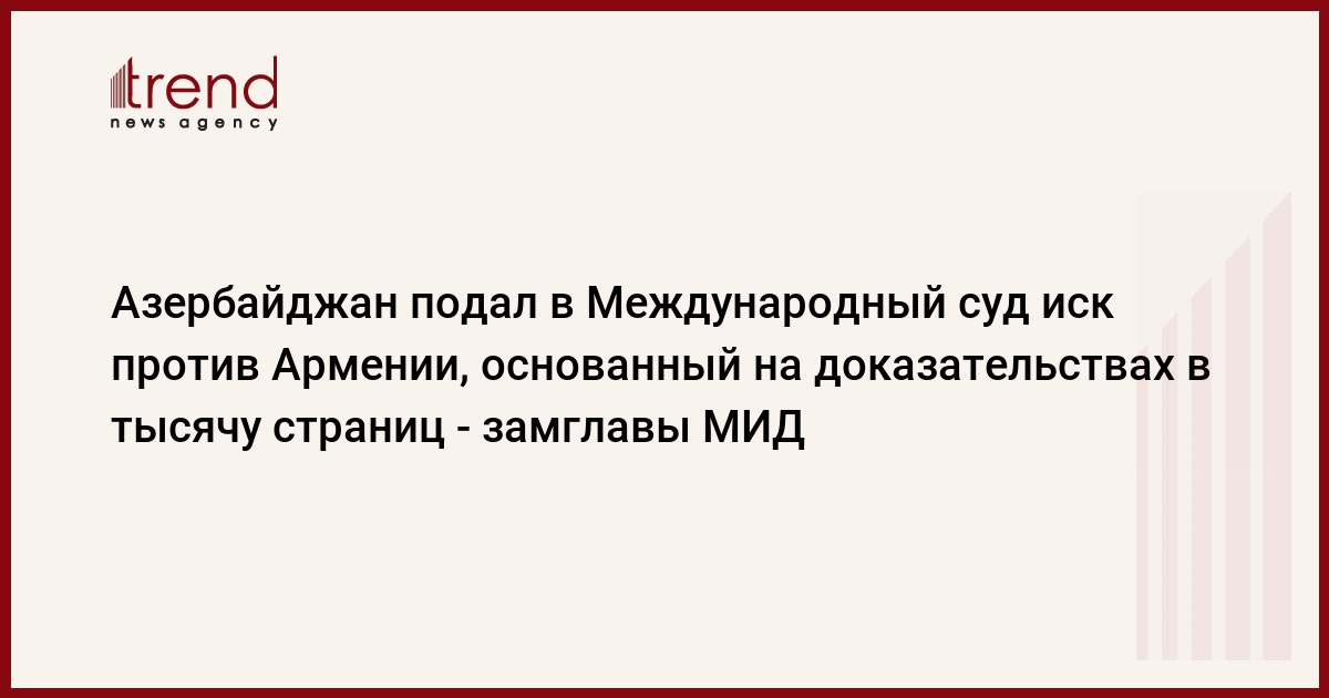 "Хочу отметить, что азербайджанская сторона 23 января текущего года заявила и представила в Международный суд свой основной иск, основанный на тысячах страниц доказательств в связи с почти тридцатилетней незаконной военной оккупации Арменией международно признанных суверенных территорий Азербайджана, изгнанием этнических азербайджанцев со своих исторических земель, совершением геноцидов и других преступлений против человечества.