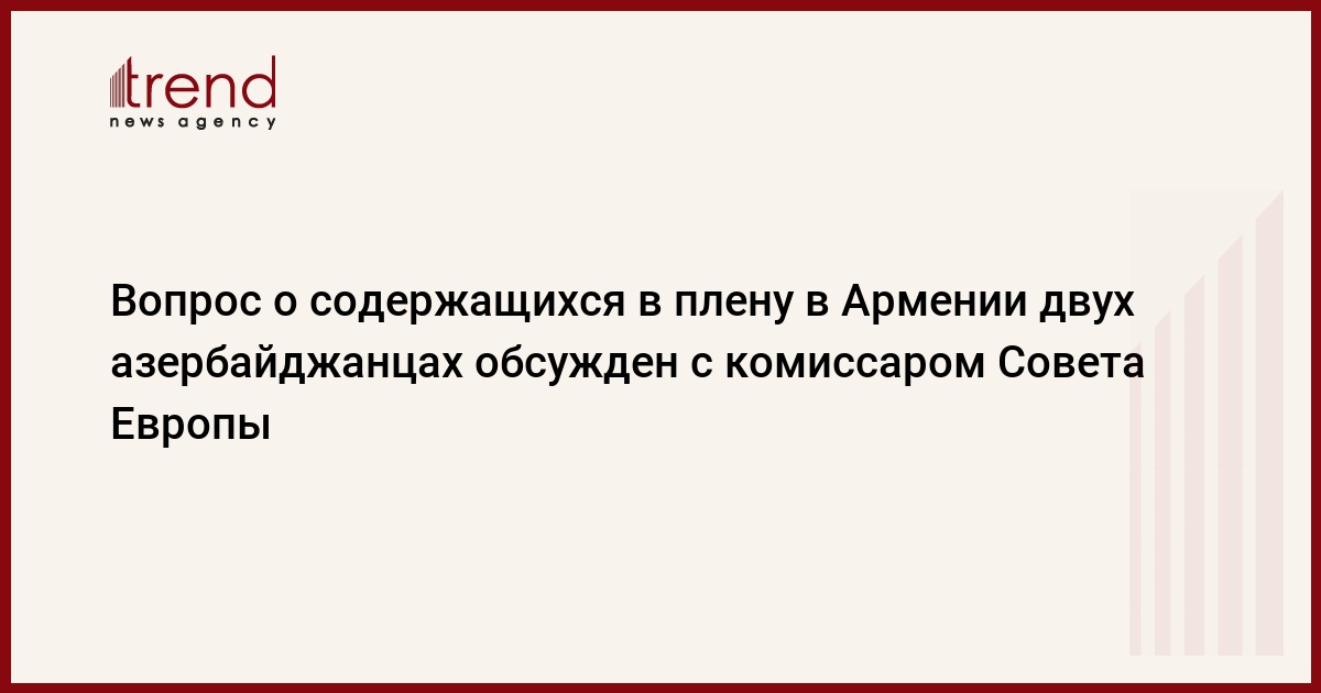 БАКУ/Trend/ – Вопрос о гражданах Азербайджана, содержащихся в плену в Армении, был поднят перед комиссаром Совета Европы по правам человека, который недавно находился с визитом в Азербайджане.