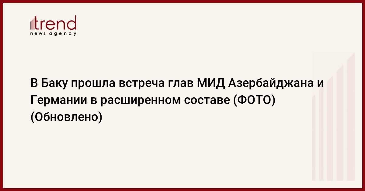 БАКУ /Trend/ - В Баку прошла встреча министра иностранных дел Азербайджана Джейхуна Байрамова и министра иностранных дел Германии Анналены Бербок в расширенном составе.