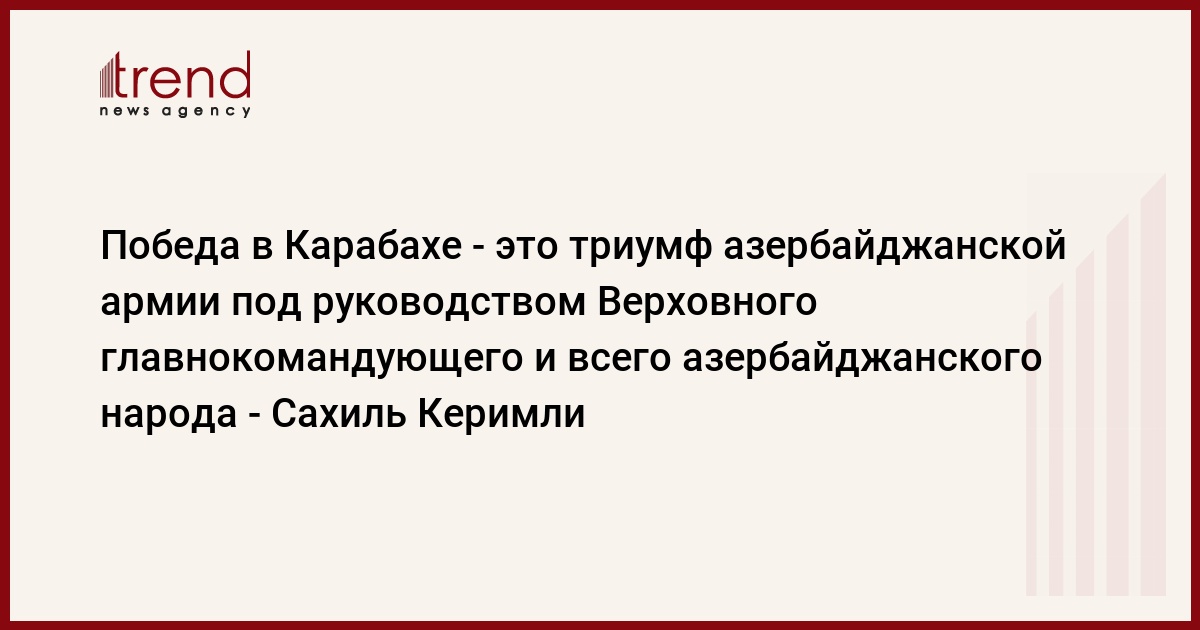 БАКУ /Trend/ - Славная Победа в Карабахе, которая является предметом чести и гордости каждого азербайджанца – это триумф азербайджанской армии под руководством победоносного Верховного главнокомандующего, всего азербайджанского народа и сынов-героев.