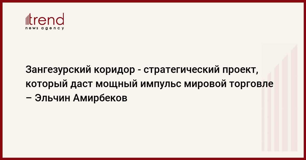 БАКУ /Trend/ - Зангезурский коридор - стратегический проект, который даст мощный импульс мировой торговле.