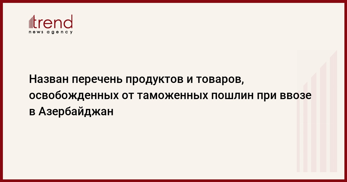 БАКУ /Trend/ - Оборудование, ввозимое в Азербайджан для производства продукции оборонного назначения, товары, ввозимые в качестве гуманитарной помощи, а также оборудование, связанное с экспортной нефтегазовой деятельностью, будут освобождены от таможенных пошлин.