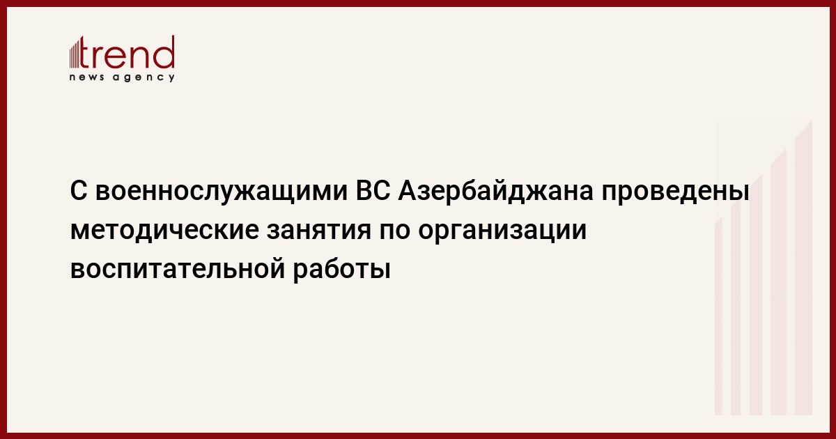 БАКУ /Trend/ - Согласно соответствующему приказу первого заместителя министра обороны - начальника Генерального штаба Азербайджанской Армии, проведены методические занятия с участием офицеров по специальности "Организация воспитательной работы и психолог".