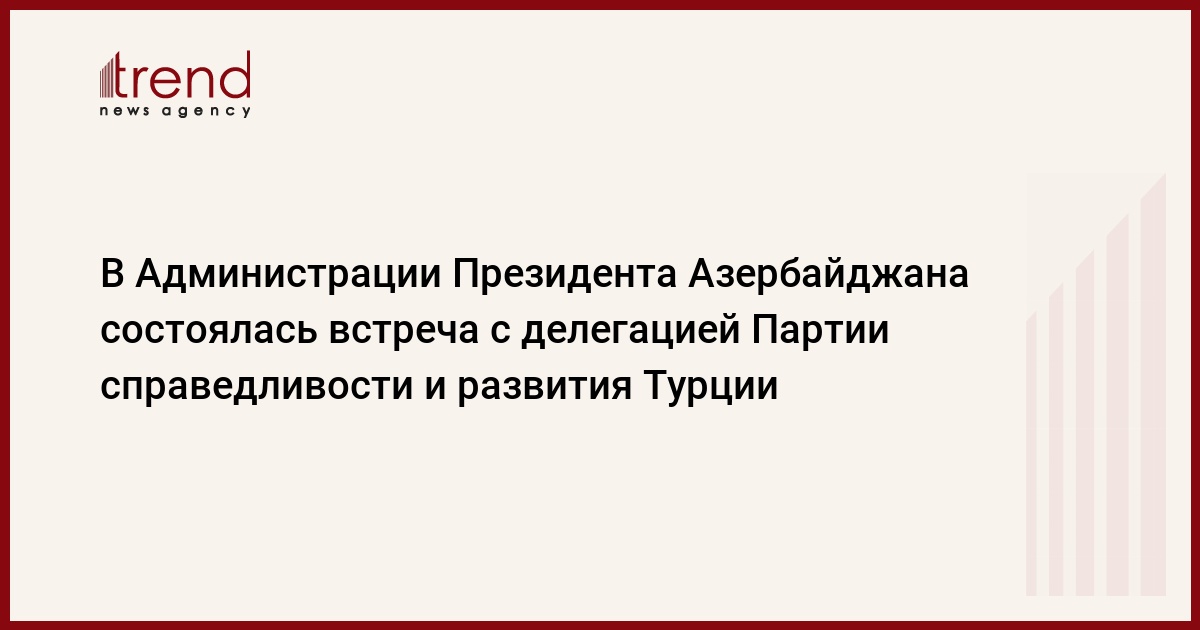 БАКУ /Trend/ - Пятого декабря заведующий отделом по связям с политическими партиями и законодательной властью Администрации Президента Азербайджанской Республики Адалят Велиев встретился с делегацией во главе с заместителем председателя Партии справедливости и развития Турции по внешним связям, депутатом от Стамбула Зафаром Сыракая.