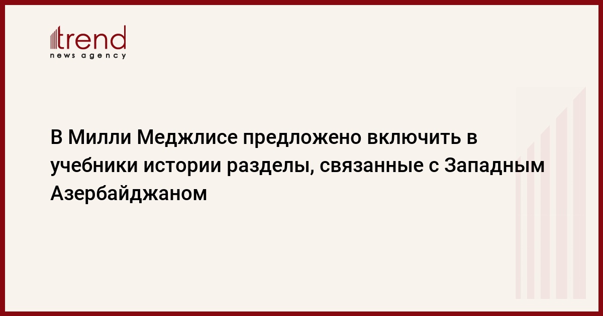 БАКУ /Trend/ - В Милли Меджлисе (парламент) Азербайджана предложено включить в учебники истории специальные разделы, связанные с Западным Азербайджаном.