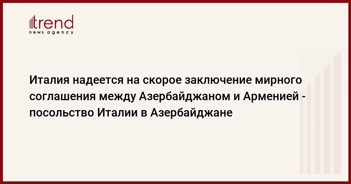 БАКУ /Trend/ - Италия надеется на скорое заключение мирного соглашения между Азербайджаном и Арменией.