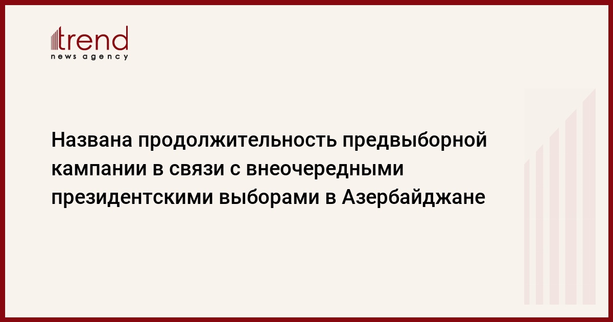 БАКУ /Trend/ - Названа продолжительность предвыборной кампании в связи с внеочередными президентскими выборами в Азербайджане.