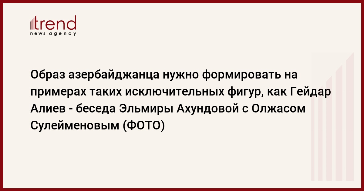 БАКУ /Trend/ - В 2023 году, который распоряжением Президента Азербайджана объявлен «годом Гейдара Алиева», мы продолжаем публикацию уникальных бесед Народного писателя Азербайджана Эльмиры Ахундовой с родными и близкими, соратниками, сослуживцами общенационального лидера.