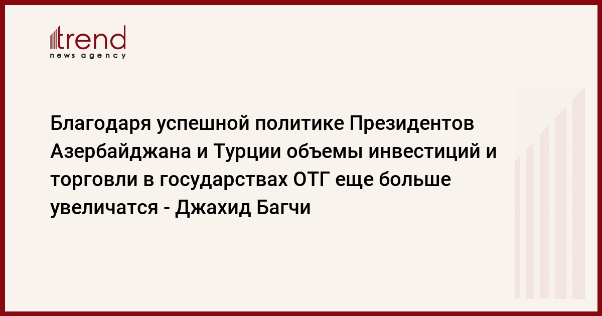БАКУ /Trend/ - Благодаря успешной политике Президентов Азербайджана и Турции объемы инвестиций и торговли внутри государств-членов Организации тюркских государств (ОТГ) еще больше увеличатся.