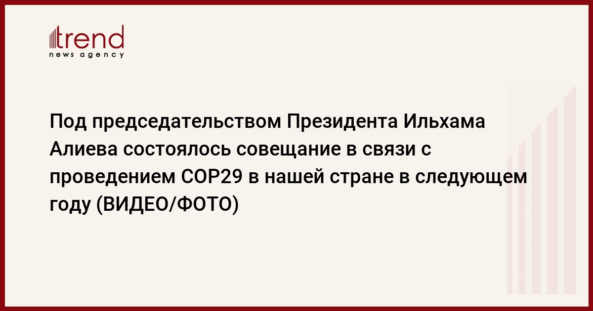 БАКУ /Trend/ - 15 декабря под председательством Президента Азербайджанской Республики Ильхама Алиева состоялось совещание в связи с проведением в нашей стране в следующем году 29-й сессии Конференции сторон Рамочной конвенции ООН об изменении климата - COP29.