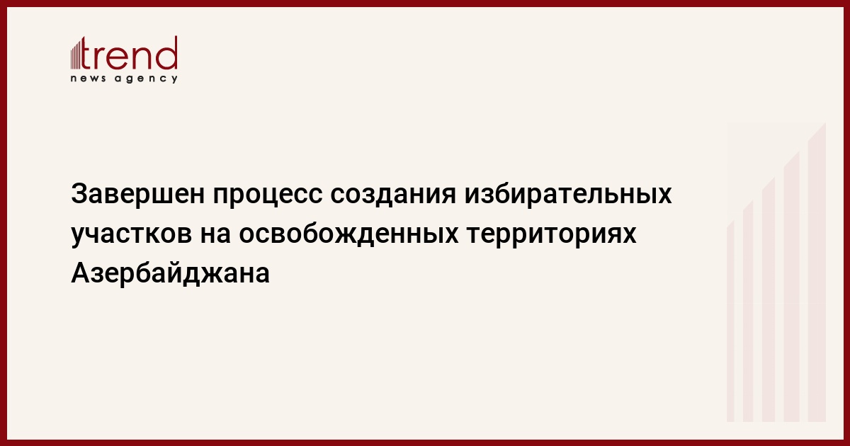 БАКУ /Trend/ - Завершен процесс создания избирательных участков на освобожденных территориях Азербайджана.