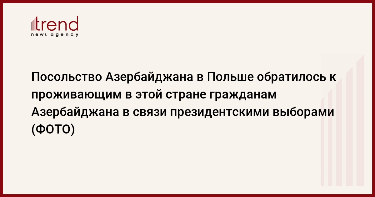 БАКУ /Trend/ - Посольство Азербайджана в Польше обратилось к проживающим в этой стране гражданам Азербайджана в связи с предстоящими внеочередными президентскими выборами.