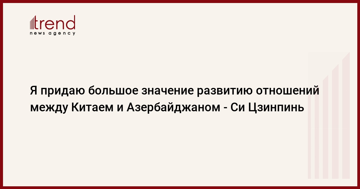 БАКУ /Trend/ - Я придаю большое значение развитию отношений между Китаем и Азербайджаном, готов продолжать с Вами совместные усилия для поднятия двусторонних отношений дружбы и сотрудничества на новый уровень во имя благополучия наших стран и народов.