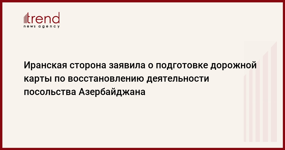БАКУ /Trend/ - Иранская сторона заявила о подготовке дорожной карты по восстановлению деятельности посольства Азербайджана.