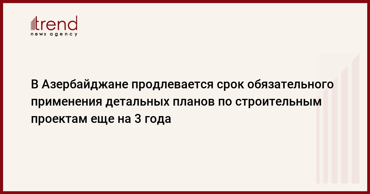 БАКУ /Trend/ - В Азербайджане срок обязательного применения детальных планов по строительным проектам продлевается еще на три года.