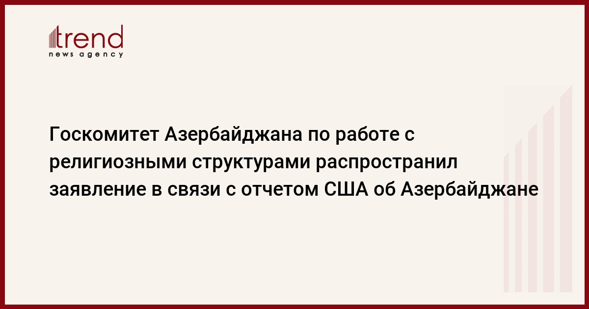 БАКУ /Trend/ - Государственный комитет Азербайджана по работе с религиозными структурами распространил заявление по поводу специального отчета, опубликованного Комиссией США по международной религиозной свободе по Азербайджану в 2023 году, и включения Азербайджана в некий "список особого наблюдения" Государственного департамента США.