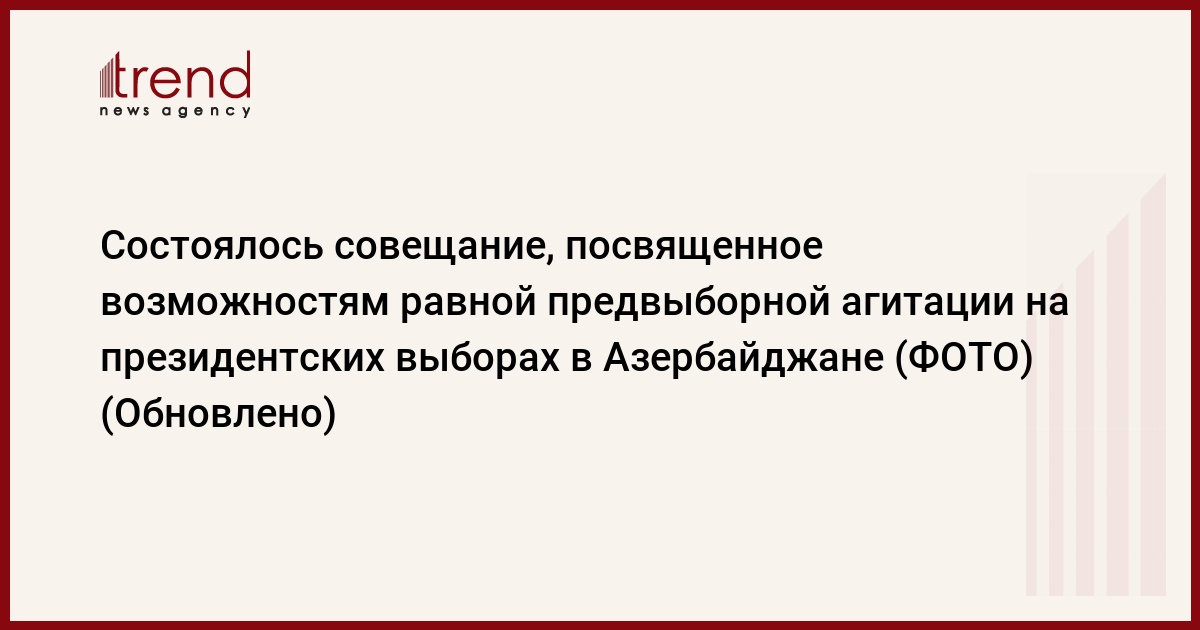 БАКУ /Trend/ - В связи с внеочередными выборами Президента Азербайджанской Республики, назначенными на 7 февраля 2024 года, интенсивно продолжается реализация просветительских проектов по различным направлениям. Так, 11 января в Баку при совместной организации Центральной избирательной комиссии (ЦИК), Агентства по развитию медиа, Аудиовизуального совета и Совета прессы Азербайджана было проведено совещание на тему возможностей предвыборной агитации и основ деятельности субъектов медиа на выборах.