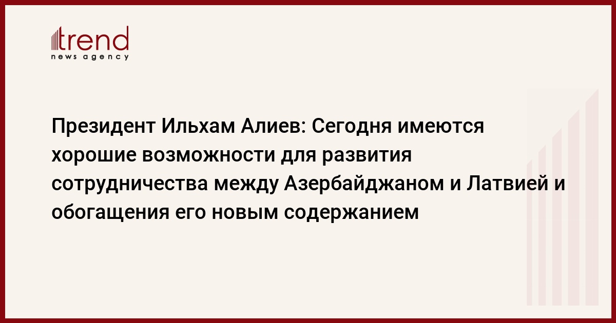 БАКУ /Trend/ - Сегодня имеются хорошие возможности для развития сотрудничества между Азербайджаном и Латвией и обогащения его новым содержанием.