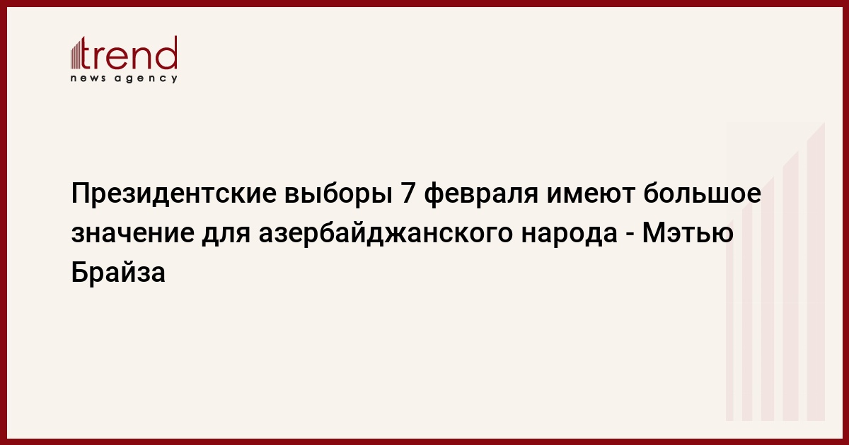 Мэтью Брайза выразил уверенность в том, что азербайджанский народ, который будет активно участвовать в выборах, после их окончания вновь направит все свое внимание и усилия на восстановительные и строительные работы на освобожденных от оккупации территориях и на возвращение вынужденных переселенцев на родные земли.