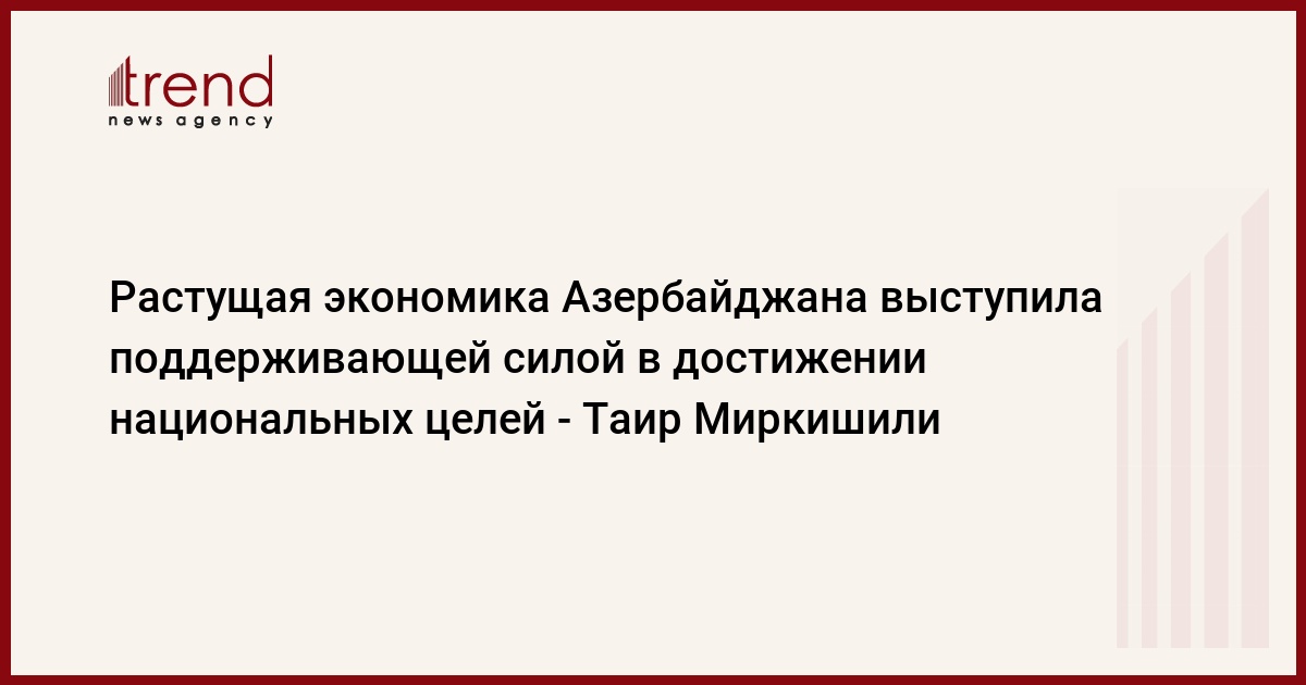 Таир Миркишили отметил, что направленность достигнутых экономических успехов на укрепление социального благосостояния граждан страны является основной линией политики Президента Ильхама Алиева. "За прошедший период бюджет социально ориентированных расходов увеличился в 20 раз, минимальная заработная плата - в 38 раз, среднемесячная заработная плата - в 12 раз, минимальная пенсия - в 16 раз, среднемесячная пенсия - в 14 раз. В настоящее время 43 процента расходов государственного бюджета приходится на расходы социальной направленности", - сказал он.