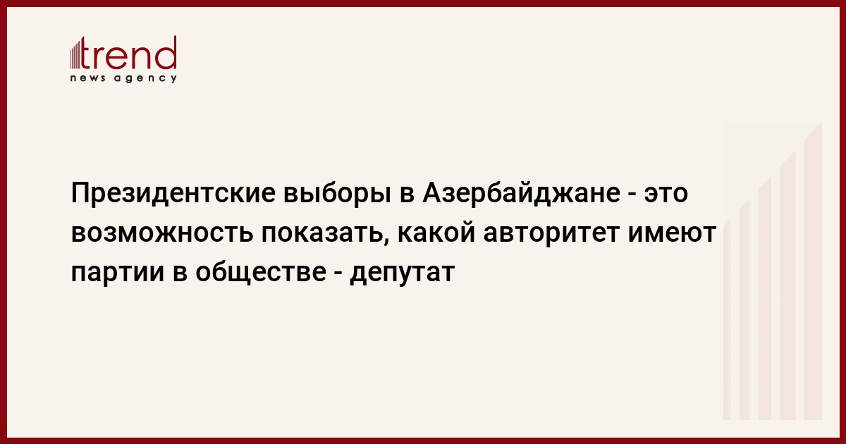 БАКУ /Trend/ - Президентские выборы в Азербайджане - это благоприятная демократическая возможность, созданная государственной властью для того, чтобы показать авторитет партий, который они имеют в обществе.